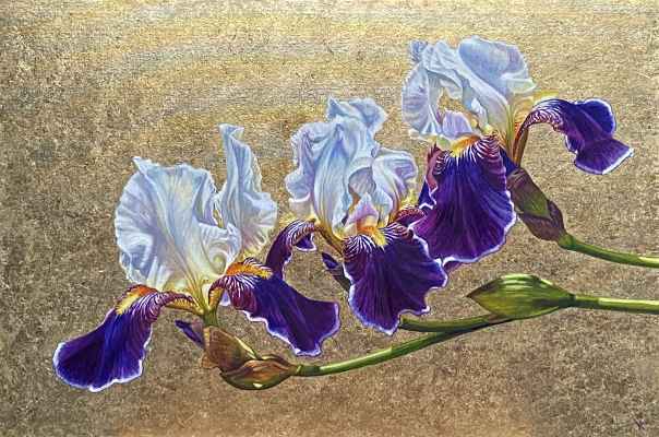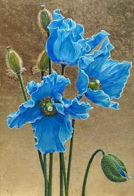 Blue Poppies On a Gilded Background, 2023 - SOLD