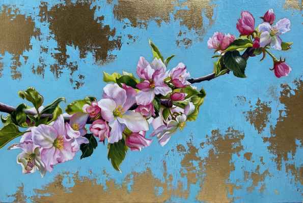 Apple Blossom Branch on Blue and Gold, 2024 - £550